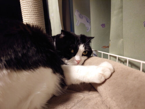 7歳2ヶ月 と 3歳9ヶ月 未分類 X Facebook はてブ LINE コピー 2026.02.17 2匹がくっついた団子は無いけど・・・コンパクトな寝姿を見かけるように みごとな丸 写真撮ってたら顔が出てきたエアコンつけると・・・ 開きに エアコンの吹き出し口の向きにある椅子はスピネルが占領